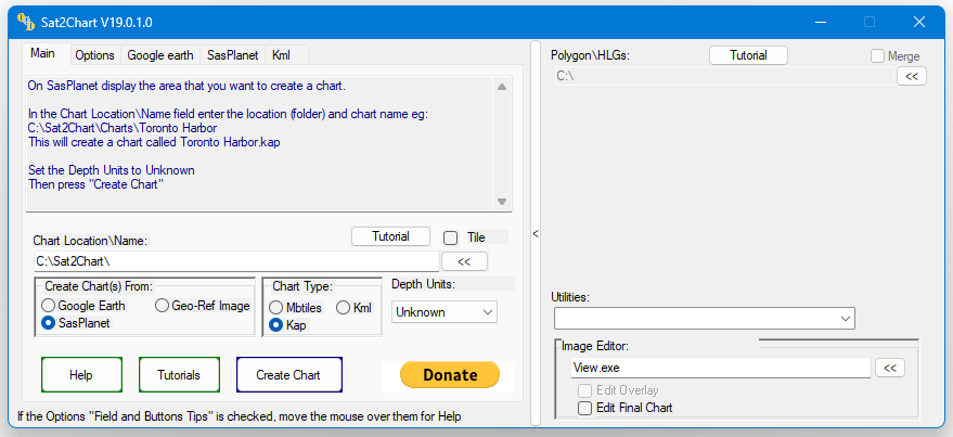 1. Launch SAT2CHART from the Windows Start Menu or desktop icon. If this is your first time using SAT2CHART, viewing the tutorial is recommended.